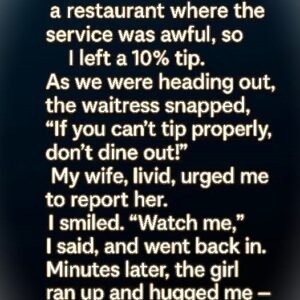 My wife and I went out to eat, and the service was terrible. Frustrated, I left a 10% tip. As we headed for the door, the waitress…