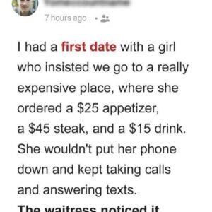 I went on a first date with a girl who insisted we eat at a high-end restaurant, even though I suggested something more casual. Once seated, she…