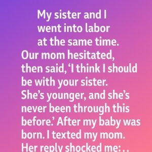 My sister and I went into labor at the same time. Our mom hesitated, then said, ‘I think I should be with your sister. She’s younger, and…