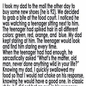 A Heartwarming Conversation Across Generation I recently took my 92-year-old dad to the mall to shop for new shoes. Afterward, we stopped at the food court for…