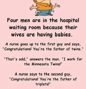 The four men’s spouses are on the brink of giving birth, prompting them to convene at the hospital. A nurse approaches the first expectant father and extends…