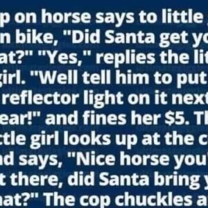 Did Santa get you that? Cop on horse says to little girl on bike, “Did Santa get you that?” “Yes,” replies the little girl. “Well tell him…