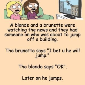 A blonde and a brunette were watching the news and they had someone on who was about to jump off a building. The brunette says “I bet…