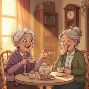 The afternoon sun filtered softly through lace curtains as two elderly ladies sat across from one another at a small round table, their teacups gently steaming. The…