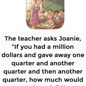 The teacher asks Joanie, “If you had a million dollars and gave away one quarter and another quarter and then another quarter, how much would you have…