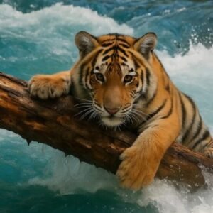 A little tiger cub got stuck in the middle of a raging river and couldn’t get out: when his last strength was gone, someone completely unexpected came…