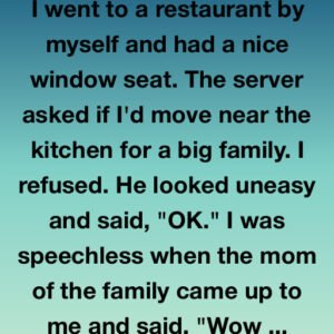 I went to a restaurant by myself and had a nice window seat. The server asked if I’d move near the kitchen for a big family. I refused. He looked…