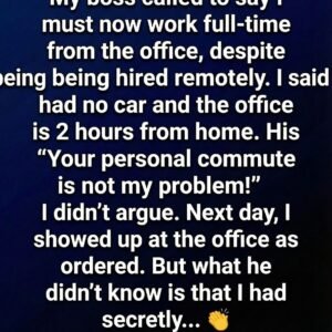 When my boss called me late one afternoon, I expected a routine check-in. Instead, he informed me that starting immediately, I was required to work full-time from…