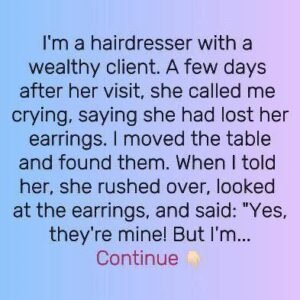 She lost her expensive earrings at my salon, when I found them, she just gave them to me.